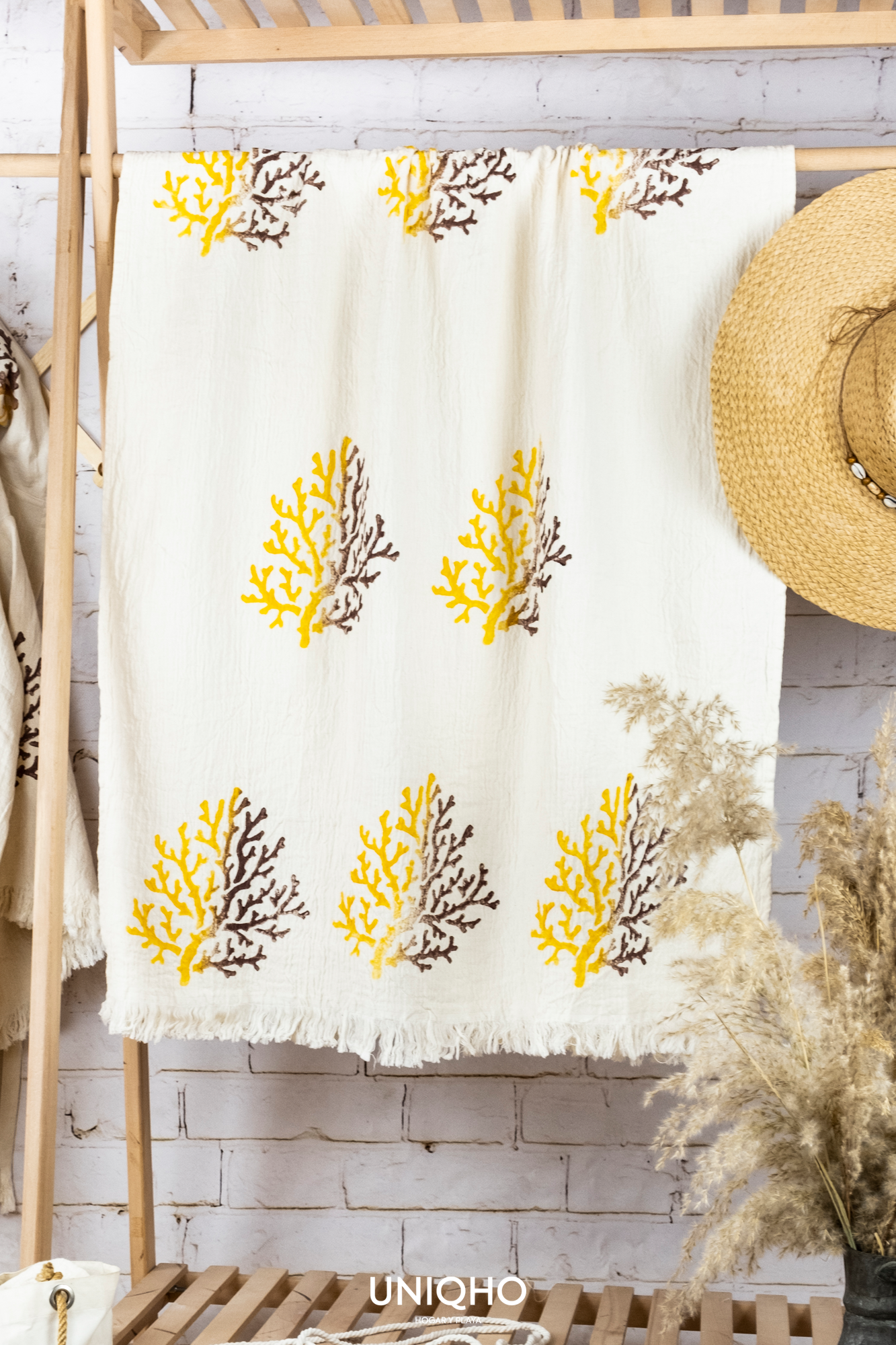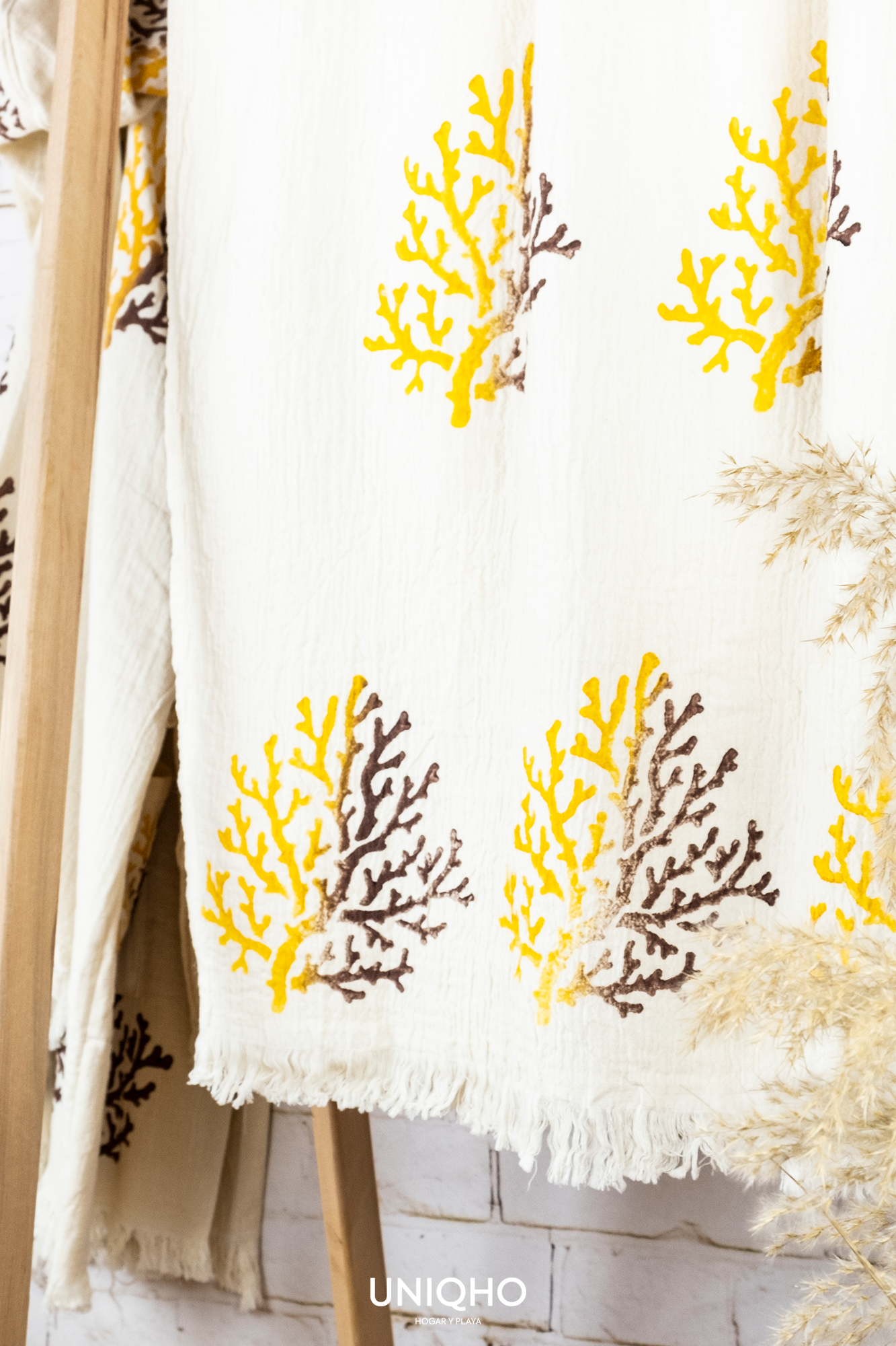 Pestamal, Toalla, Impresión con Bloques Madera, Coral Bicolor, Amarillo - Marron